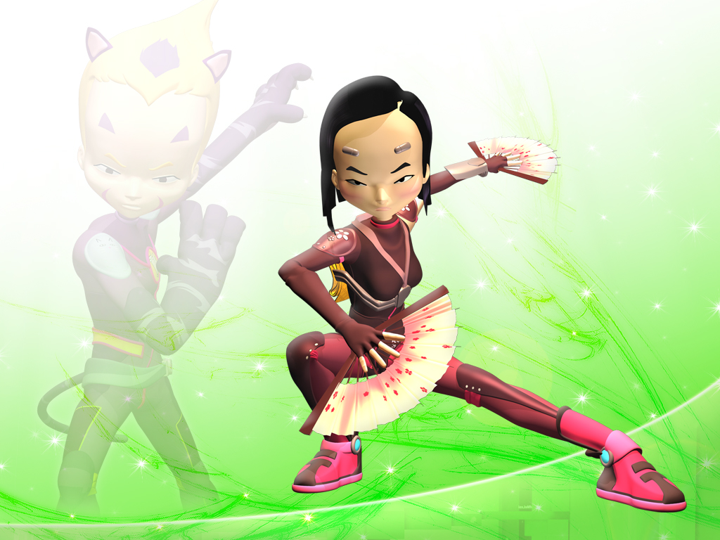 Wallpaper de Yumi et Odd Saison 4, Coloris vert clair, fond réseau Commande postée par : yumi evolution dans mon Shop