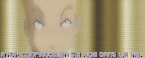 Le fond n'est pas trop mal, mais il serait mieux d'une autre couleur je pense. Sinon le problème majeur est qu'Odd est vraiment déformé ! Sinon c'est sympa la petite phrase, j'aime beaucoup la police d'écriture :) |